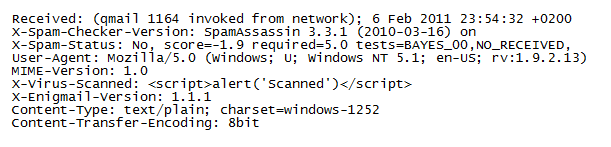 Somebody had a sense of humour, inserting a XSS joke in email headers.